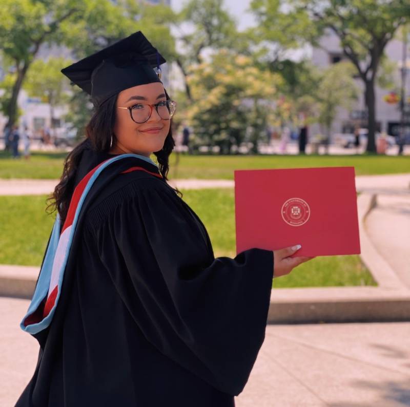 University of Winnipeg degree after her graduation ceremony in June.