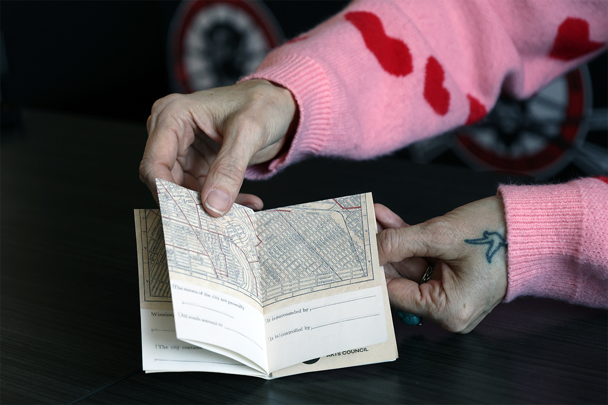 The Story of Winnipeg", a city-wide collaborative poem, comes in the shape of a small, folded booklet containing fill-in-the-blank style poetry expressing what Winnipeg means to us.