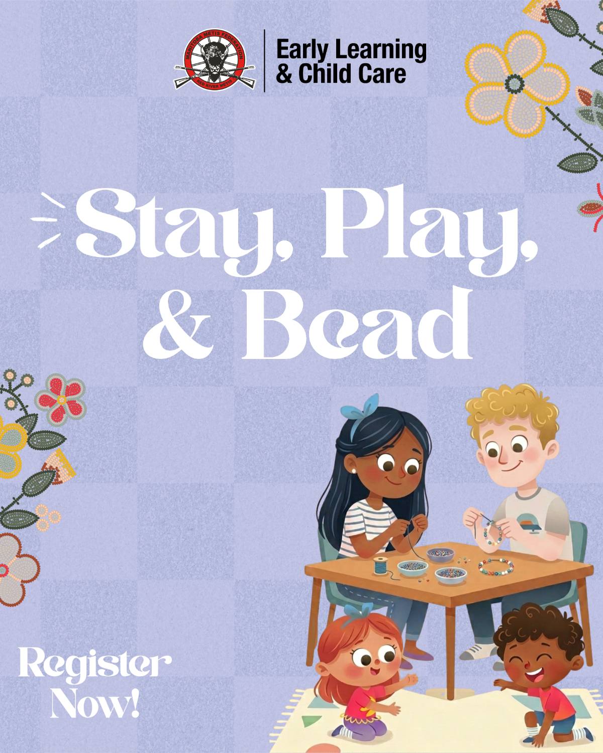 A welcoming program where children ages 0-6 are minded through play while parents/caregivers learn the traditional Red River Métis art of beadwork. It offers a calm, creative space for adults to connect with culture and community, while their little ones engage in fun, age-appropriate activities. This program supports intergenerational learning and well-being through cultural expression and shared experience.