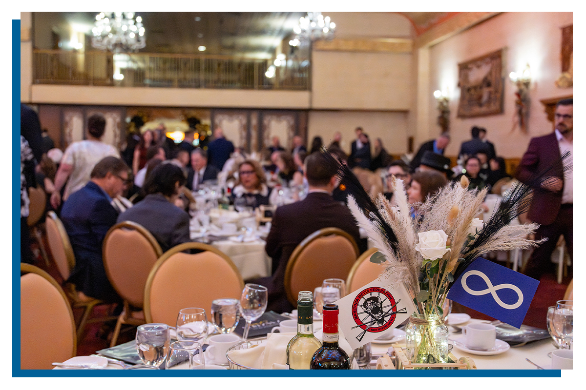 Organisé à l'hôtel Fort Garry, le gala a réuni près de 450 participants qui se sont fait de chaleureuses accolades, ont échangé de sympathiques sourires et ont fait du réseautage de la manière exceptionnelle propre aux Métis de la Rivière Rouge.