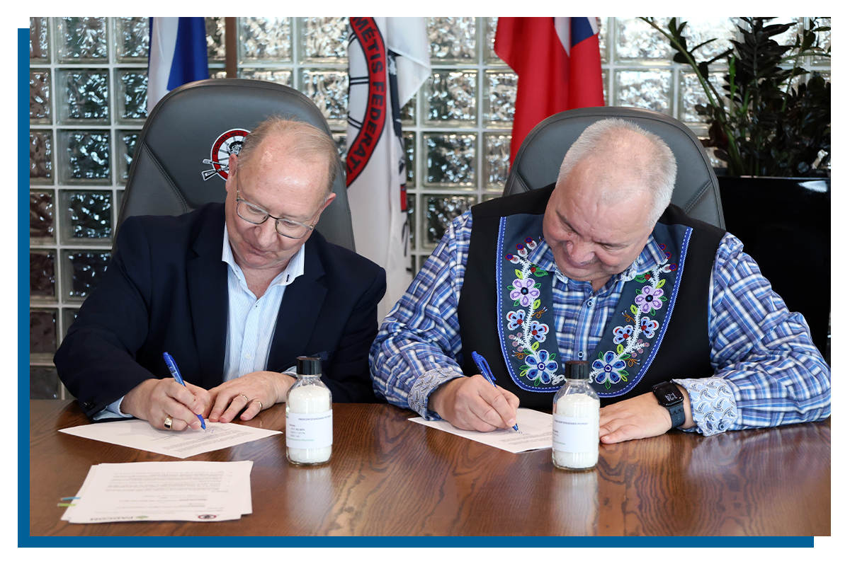 On February 28, the MMF signed an unprecedented royalty agreement with Potash and Agri Development Corporation of Manitoba (PADCOM). The agreement, a unique and leading agreement in Canada, reflects PADCOM's recognition of the MMF as the National Government of the Red River Métis and demonstrates their industry leadership and respect for the MMF and the Red River Métis, including our right to self-determination and self-government.