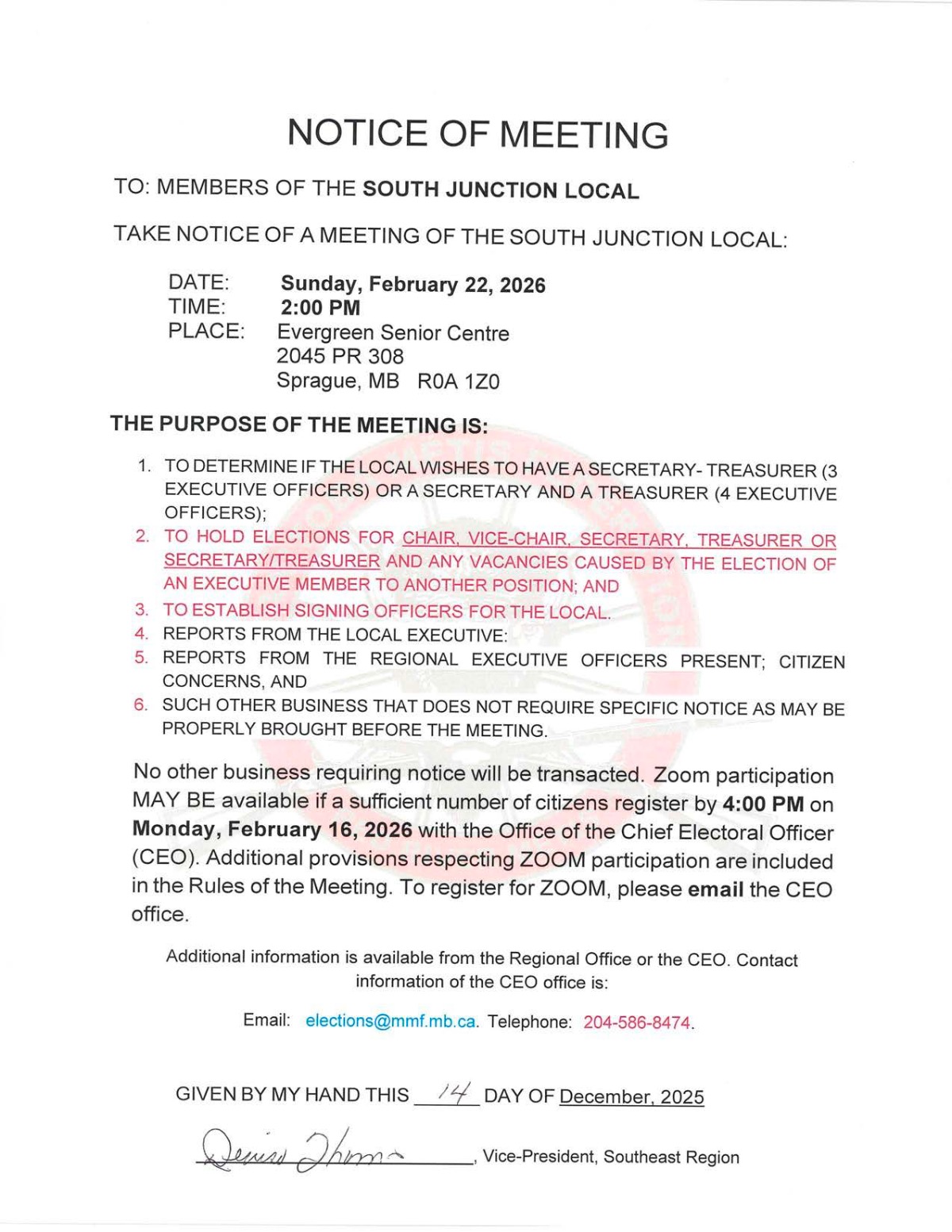 Notice of Meeting - South Junction Local
